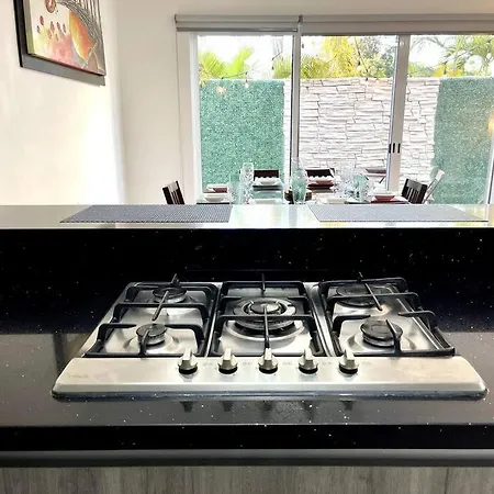 Denne villa har også et køkken. Cancun lufthavn ligger 19 minutters tur i bil væk.